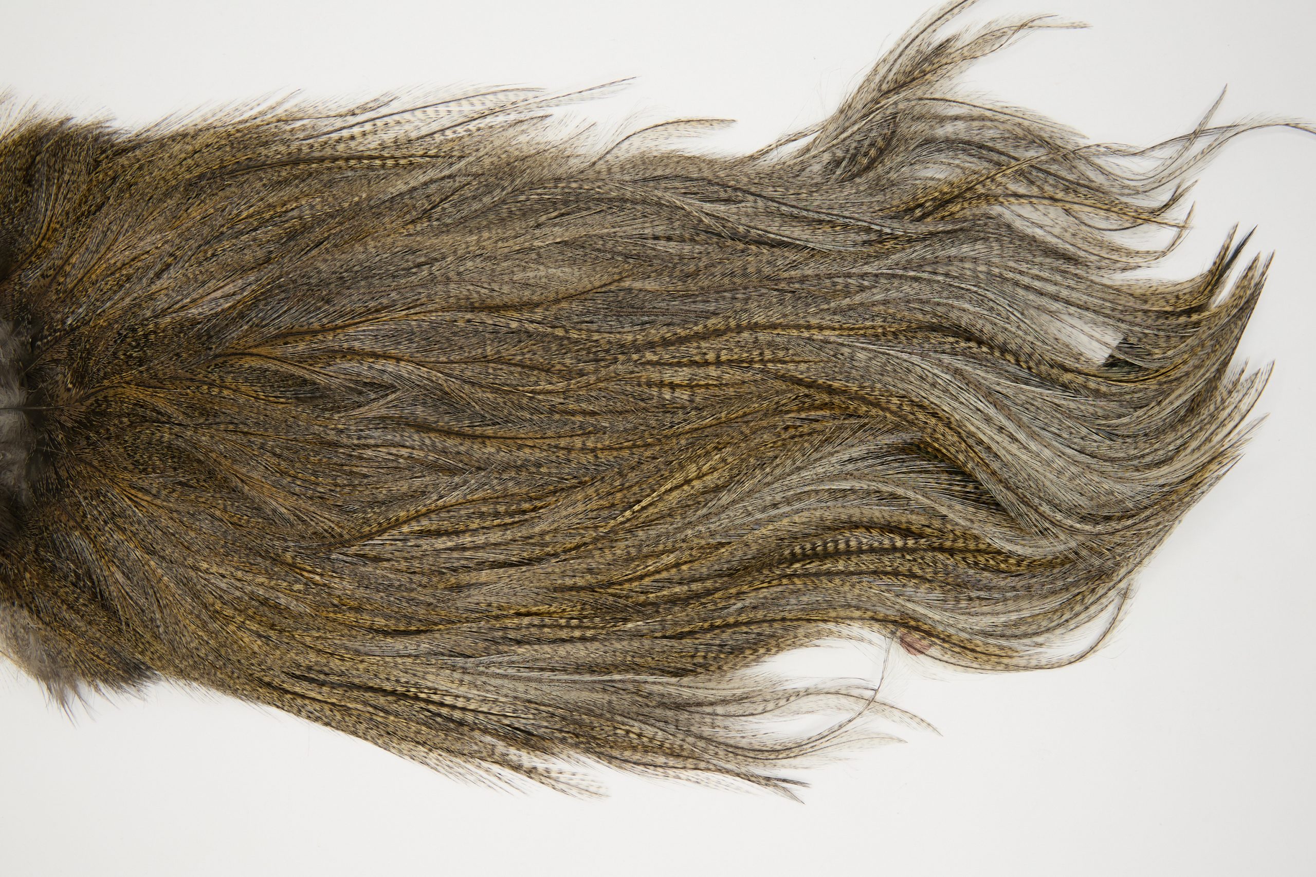 11729 is a Coq De Leon Silver Grade Rooster Cape of Light Pardo color that ties predominately size NA. The image shown is an actual photo of this dry fly saddle. This is NEW UNUSED HACKLE.