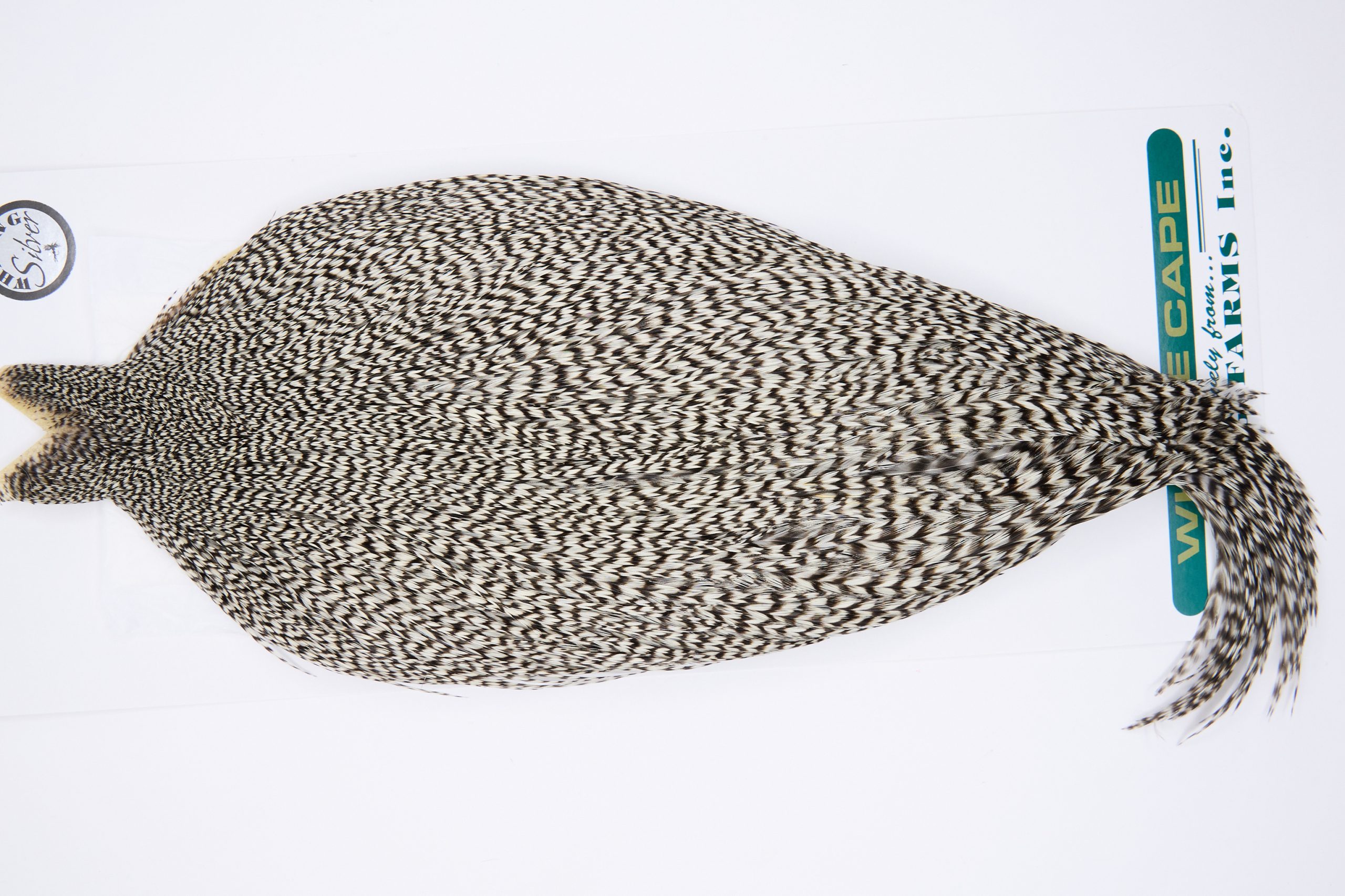 11746 is a Hebert Minor Silver Grade Rooster Cape of Grizzly color that ties predominately size 6-22. The image shown is an actual photo of this dry fly cape. This is NEW UNUSED HACKLE.