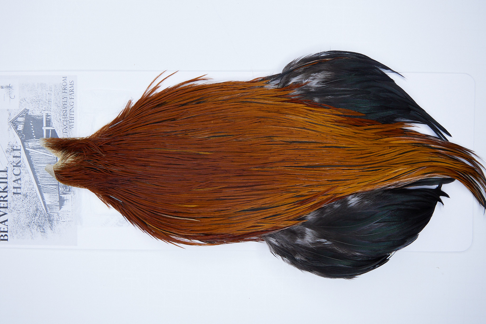 12339is a Beaverkill Rooster Cape of Brown color that ties predominately size 10-20. The image shown is an actual photo of this dry fly cape. This is NEW UNUSED HACKLE.