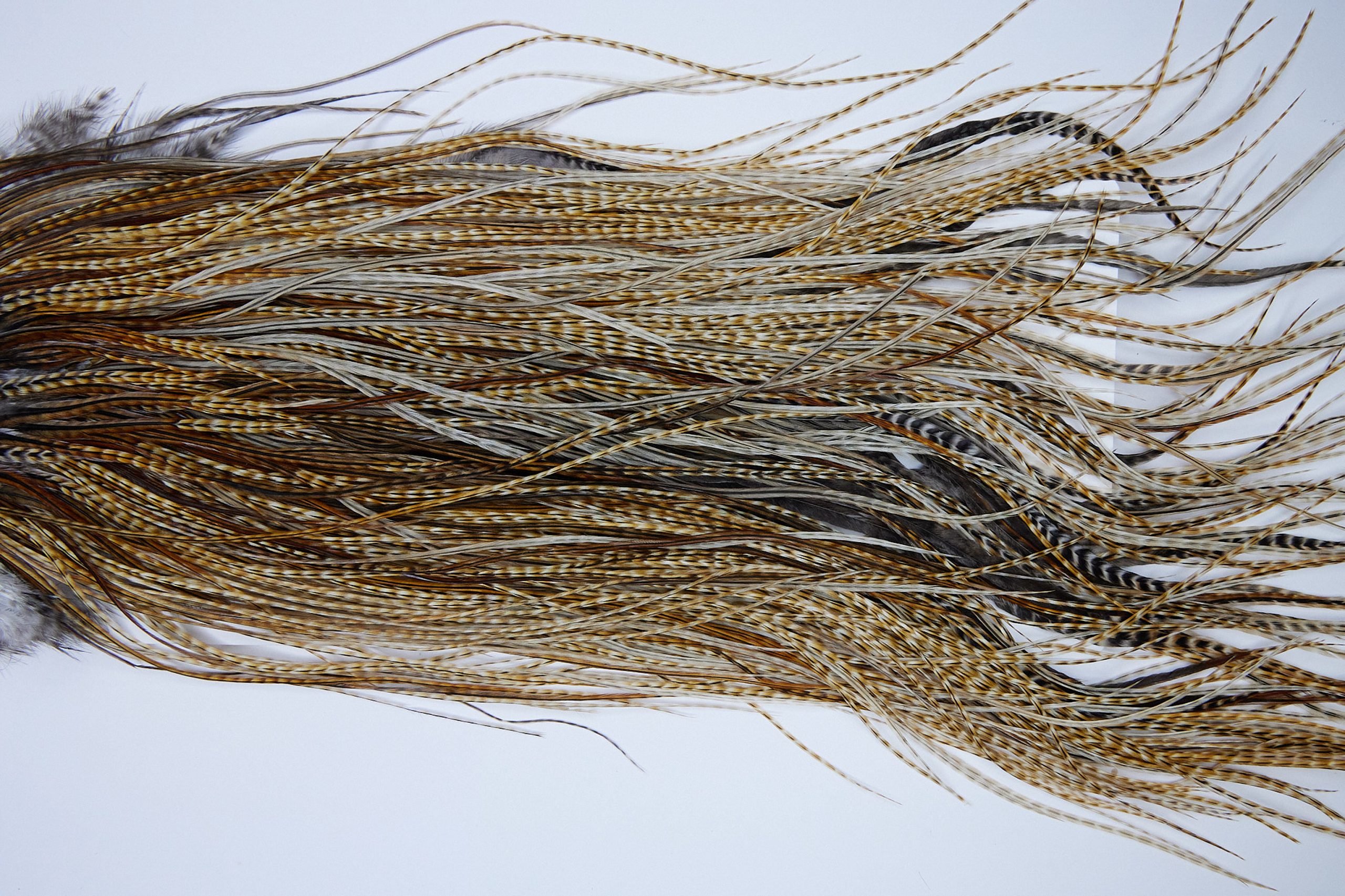 1617 is a Whiting Silver Grade Midge Saddle of Barred Medium Ginger color that ties predominately size 16-18. The image shown is an actual photo of this wet fly saddle. This is NEW UNUSED HACKLE.