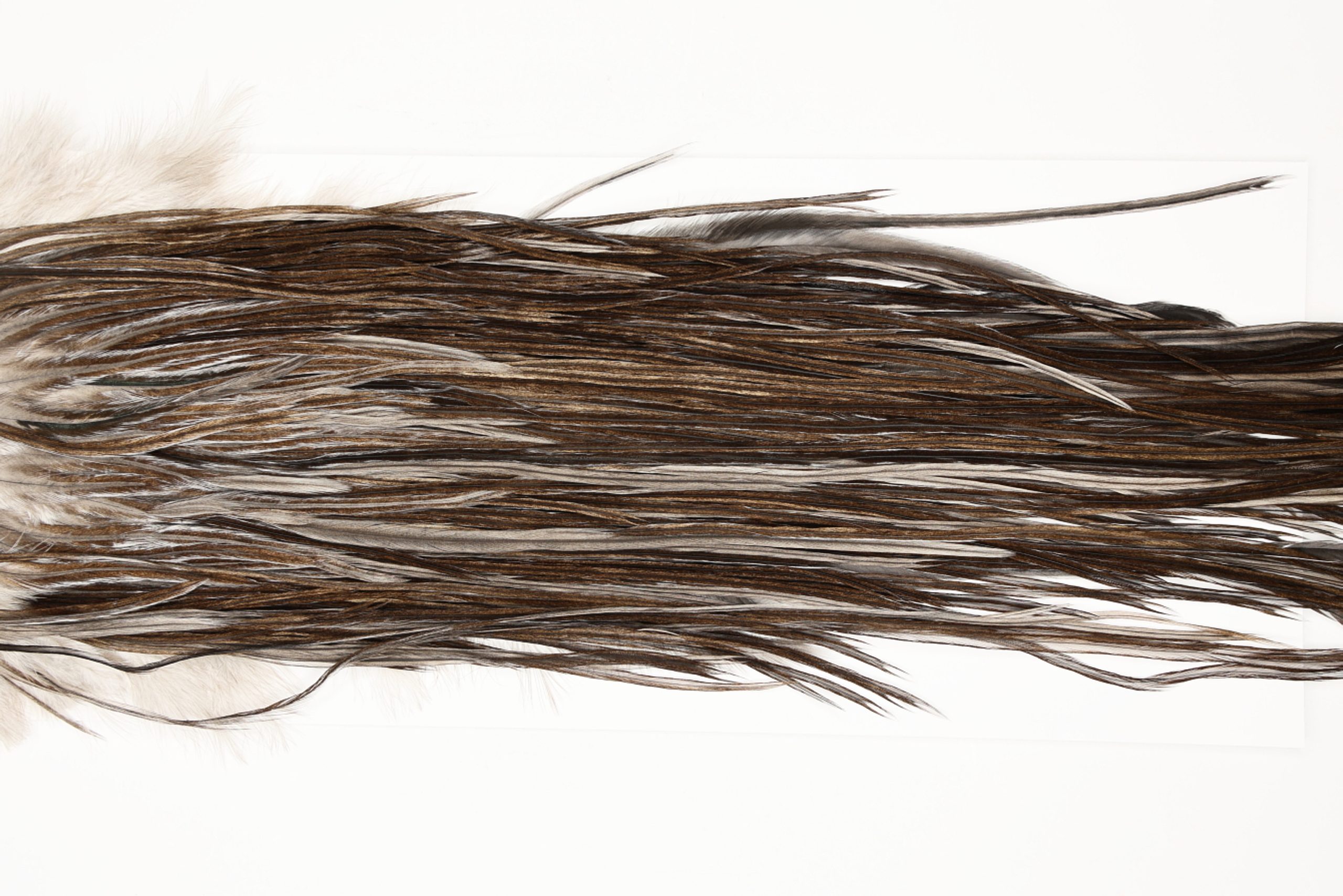 7159 is a JimsFlyCo Grade 2 Rooster Saddle of Brown Dun color that ties predominately size 12. The image shown is an actual photo of this dry fly saddle. This is NEW UNUSED HACKLE.