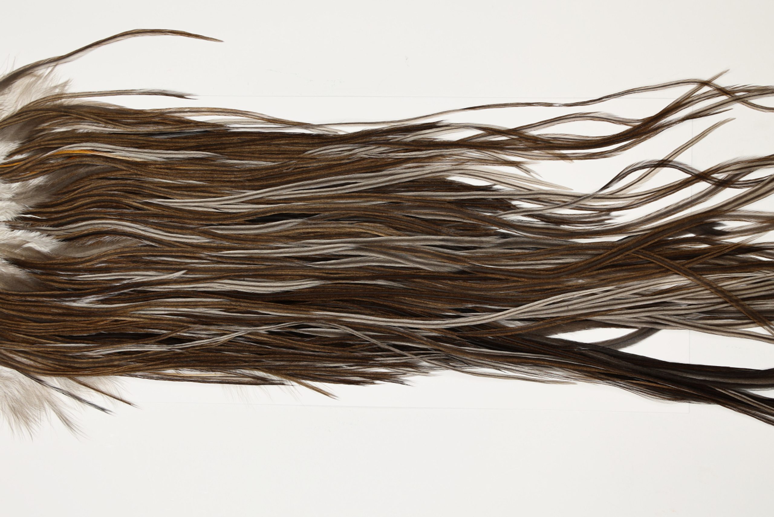 7312 is a JimsFlyCo Grade 2 Rooster Saddle of Dark Dun color that ties predominately size 12-14. The image shown is an actual photo of this dry fly saddle. This is NEW UNUSED HACKLE.