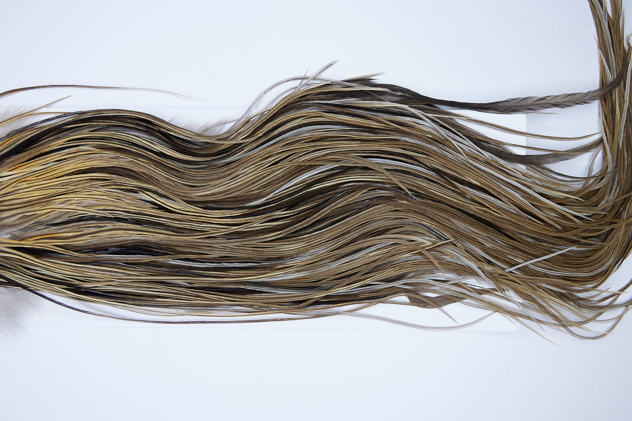 1779 is a Heritage Grade 1 Rooster Saddle of With Vermiculation color that ties predominately size 14-16. The image shown is an actual photo of this dry fly saddle. This is NEW UNUSED HACKLE.
