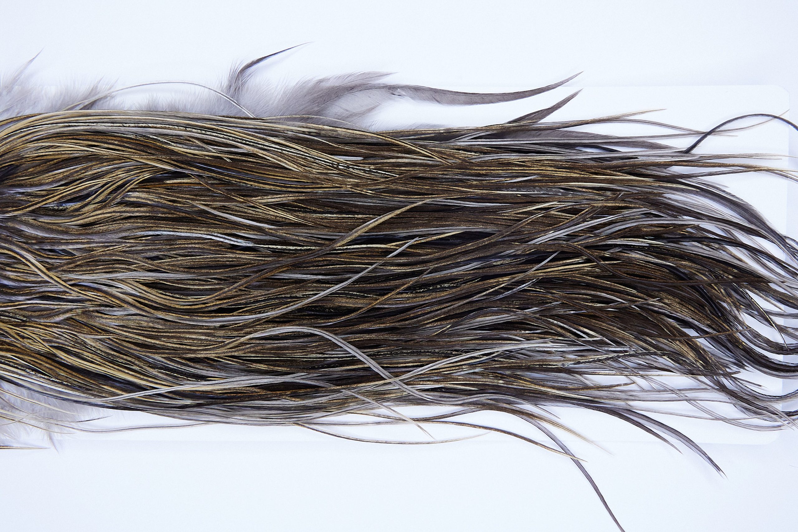 2081 is a Heritage Grade 3 Rooster Saddle of Vermiculated Dun color that ties predominately size 14-16. The image shown is an actual photo of this dry fly saddle. This is NEW UNUSED HACKLE.