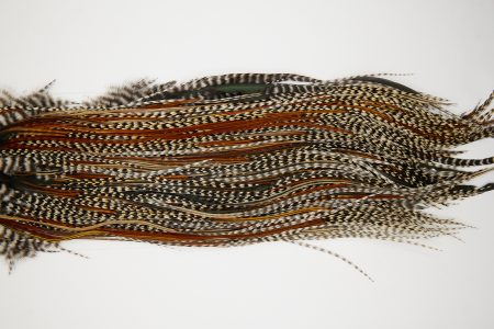 10016 is a Heritage Grade 1 Rooster Saddle of Cree color that ties predominately size 10-12. The image shown is an actual photo of this dry fly cape. This is NEW UNUSED HACKLE.
