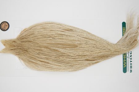 10942 is a Hebert Minor Bronze Grade Rooster Saddle of Pale Watery Dun color that ties predominately size 10-20. The image shown is an actual photo of this dry fly saddle. This is NEW UNUSED HACKLE.